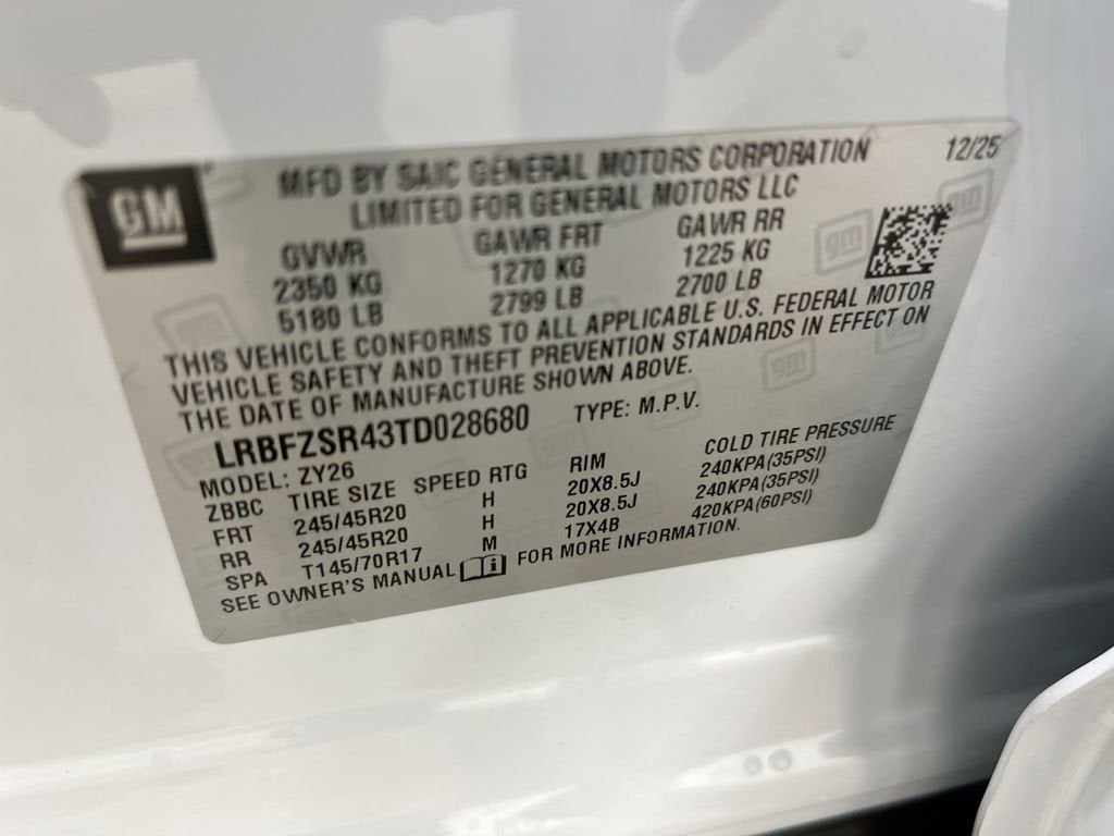 - Tires, P245/45R20 all-season