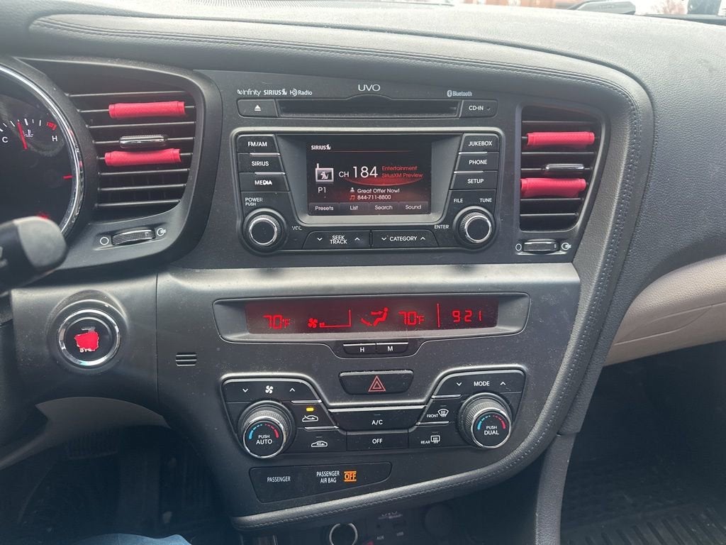 This 2013 Kia Optima EX is being offered to you as an alternative to us taking to the auction. It's being offered COMPLETELY AS IS in the condition it was traded. It comes with no guarantees. Below are some details on this vehicle and additional info from our appraisal team.FWD 2.4L I4 DGI DOHC SULEV 6-Speed Automatic with Sportmatic 4D Sedan Metal Bronze Pearl Metallic, Beige Leather, 6 Speakers, ABS brakes, CD player, Front dual zone A/C, Fully automatic headlights, Heated & Cooled Front Seats, Panoramic Sunroof, Power driver seat, Power windows, Speed control, Steering wheel mounted audio controls.Here are the following things noticed on the appraisal:*Carfax reported minor damage 2x*runs, drives and shifts okay*brakes and tires okay*struts makes noise over bumps at times*driver rear door trim piece missingAS-TRADED $6900 + TAXES & FEES!!!