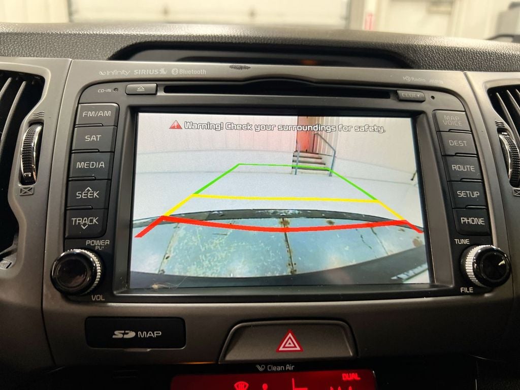 2014 Kia Sportage SX FWD 2.0L I4 DGI Turbocharged 6-Speed Automatic 4D Sport Utility Twilight Blue 20/26 City/Highway MPG CD player, Exterior Parking Camera Rear, Front dual zone A/C, Fully automatic headlights, Heated front seats, Infinity Audio System, Power driver seat, Power windows, Speed control, Steering wheel mounted audio controls.