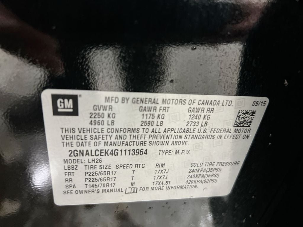 2016 Chevrolet Equinox LT FWD 2.4L 4-Cylinder SIDI DOHC VVT 6-Speed Automatic with Overdrive 4D Sport Utility Black 22/32 City/Highway MPG Fully automatic headlights, Heated Driver & Front Passenger Seats, Power driver seat, Power windows, Speed control, Steering wheel mounted audio controls.