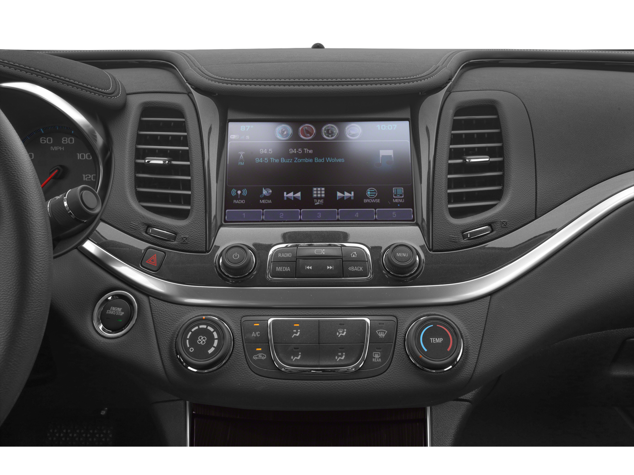 - Audio system, Chevrolet Infotainment System with 8" diagonal color touch-screen, AM/FM stereo with seek-and-scan and digital clock, includes Bluetooth streaming audio for music and select phones; voice-activated technology for radio and phone; featuring Android Auto and Apple CarPlay capability for compatible phone and Shop with the ability to browse, select and install apps to your vehicle. Apps include Pandora, iHeartRadio, The Weather Channel and more