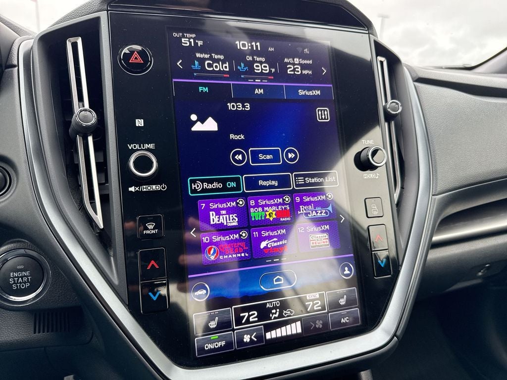 - Radio: Subaru STARLINK 11.6" Multimedia Plus Sys -inc: AM/FM stereo HD Radio, multi-touch gesture high resolution display screen, voice activated controls, Bluetooth® audio streaming connectivity, Bluetooth® hands-free phone connectivity, Bluetooth® hands-free SMS text messaging connectivity (applicable w/compatible cell phone), Near Field Communication (NFC), iPod control capability, rear-vision camera display, SiriusXM All Access radio (4 months free trial/subscription required after), SiriusXM Travel Link (4 months free trial/subscription required after), smartphone integration: Android Auto, CarPlay, STARLINK cloud applications, 6 speakers and roof mounted audio and satellite antenna