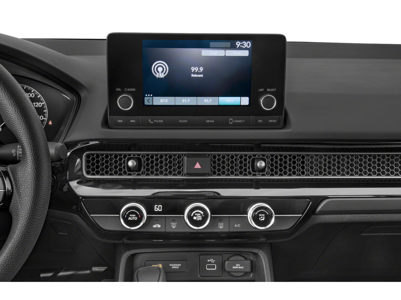 - Radio: 160-Watt Audio System -inc: 4 speakers, 7" color touchscreen, Bluetooth® HandsFreeLink and streaming audio, Radio Data System (RDS), Speed-Sensitive Volume Compensation (SVC), HondaLink, SMS text message function (Your wireless carrier's rate plans apply, State or local laws may limit use of texting feature.), Apple CarPlay and Android Auto compatibility and 2.5-amp USB smartphone/audio interface port in front console